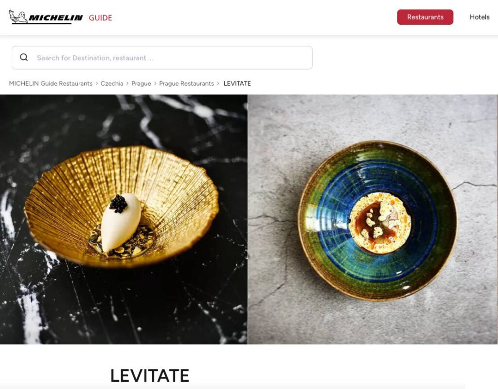 Um deles é o restaurante Levitate, que serve pratos requintados misturando técnicas nórdicas com ingredientes tchecos e especiarias asiáticas.